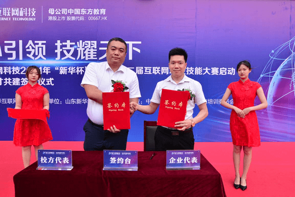 2021年6月29日,“匠心引領 技耀天下”新華互聯網科技2021年“新華杯”全國第十二屆互聯網職業技能大賽暨校企人才共建簽約儀式在山東新華電腦學院足球場隆重舉行。
