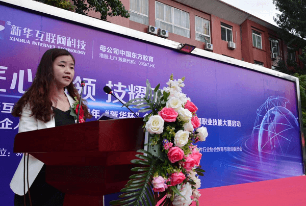 天橋區人力資源和社會保障局局長孟麗華、中國軟件行業協會教育與培訓委員會認證主任高智、山東新華電腦學院院長陳偉紅、北京順昌盛世集團有限公司總經理李杰波、濟南樂家網眾裝飾有限公司總經理李毅、山東北落師門科技信息有限公司人資行政經理劉丹、濟南源創軟件有限公司副總經理王篤蕾、濟南新廣達圖文快印有限公司運營總監白凌、山東邁思奇動漫科技有限公司總經理閆辛帥、北京華視風行集團有限公司副總經理張貴杰、山東新華電腦學院市場部負責人王景旭、教學負責人范樹明、西校區負責人武保鵬、教務處負責人郭天強、學生職業能力發展中心負責人侯海濤以及相關行業領導嘉賓、合作企業代表出席了本次活動。同時,本次啟動儀式進行了線上同步直播。山東新華電腦學院院長陳偉紅首先致開場辭。陳院長表示,新華互聯網科技以多元化、多維度的教育模式,積極響應國家“互聯網+”的政策號召,加快推進職業教育的發展,培養高素質的專業技能人才。此次互聯網職業技能大賽是推動項目化教學改革的一項重要活動,希望同學們勤于思考,勇于創新,積極參與進來,提高實踐能力、就業能力、創新和創意能力。