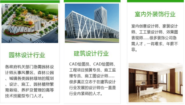 就職崗位:房地產開發公司、家裝設計公司、工裝設計公司、展示設計公司、平面設計公司、園林設計公司、建筑公司、空間設計公司、廣告公司等。