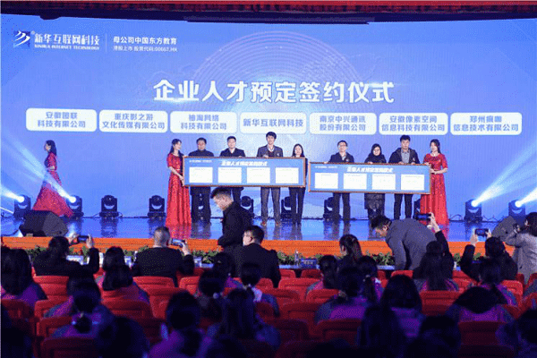 "六穩(wěn)六保"工作"都將就業(yè)都擺在首位,解決好學(xué)生的就業(yè)是發(fā)展職業(yè)教育的重中之重。讓學(xué)生好就業(yè)、就好業(yè)是一所優(yōu)秀的職業(yè)教育院校存在與發(fā)展的根本,而校企合作模式是新形勢下企業(yè)和學(xué)校共同的必然選擇,這是一條學(xué)校、學(xué)生、企業(yè)三方“共贏”的道路,具有可持續(xù)發(fā)展性的人才培養(yǎng)策略。本次活動現(xiàn)場,新華互聯(lián)網(wǎng)科技與12家企業(yè)代表簽約人才預(yù)定協(xié)議。校企雙方對進(jìn)一步創(chuàng)新合作模式,推動校企合作發(fā)展進(jìn)入“快車道”達(dá)成共識。校企雙方從簽訂人才共建協(xié)議、總監(jiān)進(jìn)校授課、人才定向培養(yǎng)、帶薪頂崗實習(xí)、畢業(yè)直通名企……全面打通學(xué)生的綠色就業(yè)通道,保障學(xué)生畢業(yè)有工作,企業(yè)發(fā)展有人才。