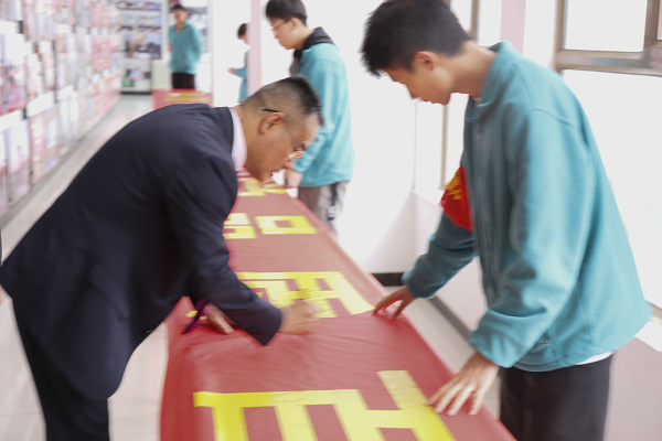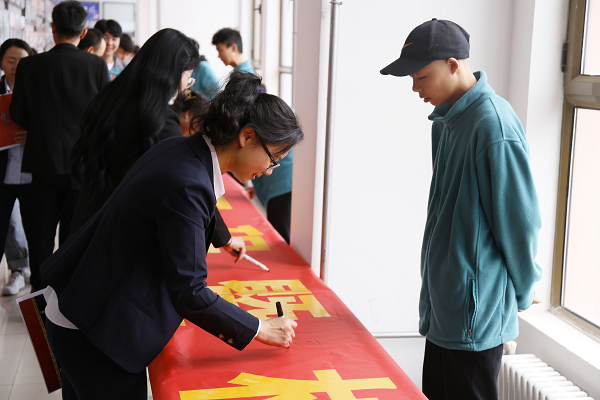 儀式最后,蘭州新華全體師生在“共建文明校園”橫幅上簽名,表達了創建文明校園的信心和決心。