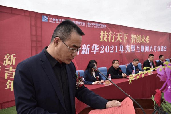 蘭州樂(lè)印科技有限公司總經(jīng)理王國(guó)慶在講話中表示高度認(rèn)同蘭州新華互聯(lián)網(wǎng)學(xué)校的辦學(xué)理念及宗旨,并指出職業(yè)教育承擔(dān)的使命。作為本次眾多企業(yè)的招聘代表,感謝校方為企業(yè)發(fā)展提供的平臺(tái)和吸納人才的好機(jī)會(huì)。并希望學(xué)生要克服眼高手低不腳踏實(shí)地的短板,通過(guò)培養(yǎng)積極的職業(yè)形態(tài),良好的職業(yè)操守和習(xí)慣,以優(yōu)雅的職業(yè)禮儀、專業(yè)的技能,成為標(biāo)準(zhǔn)的職業(yè)人,增加自身社會(huì)競(jìng)爭(zhēng)的本領(lǐng),為企業(yè)發(fā)展獻(xiàn)策獻(xiàn)力,也為學(xué)校增光添彩。